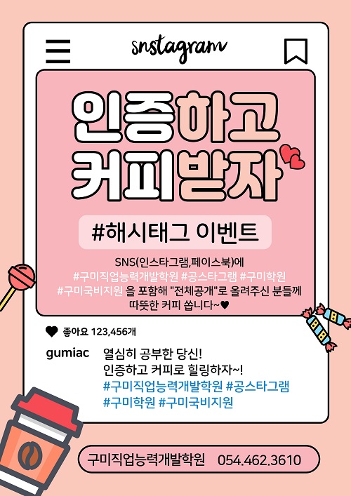 SNS(인스타,페이스북) 인증하고 커피기프티콘 받아가세요~