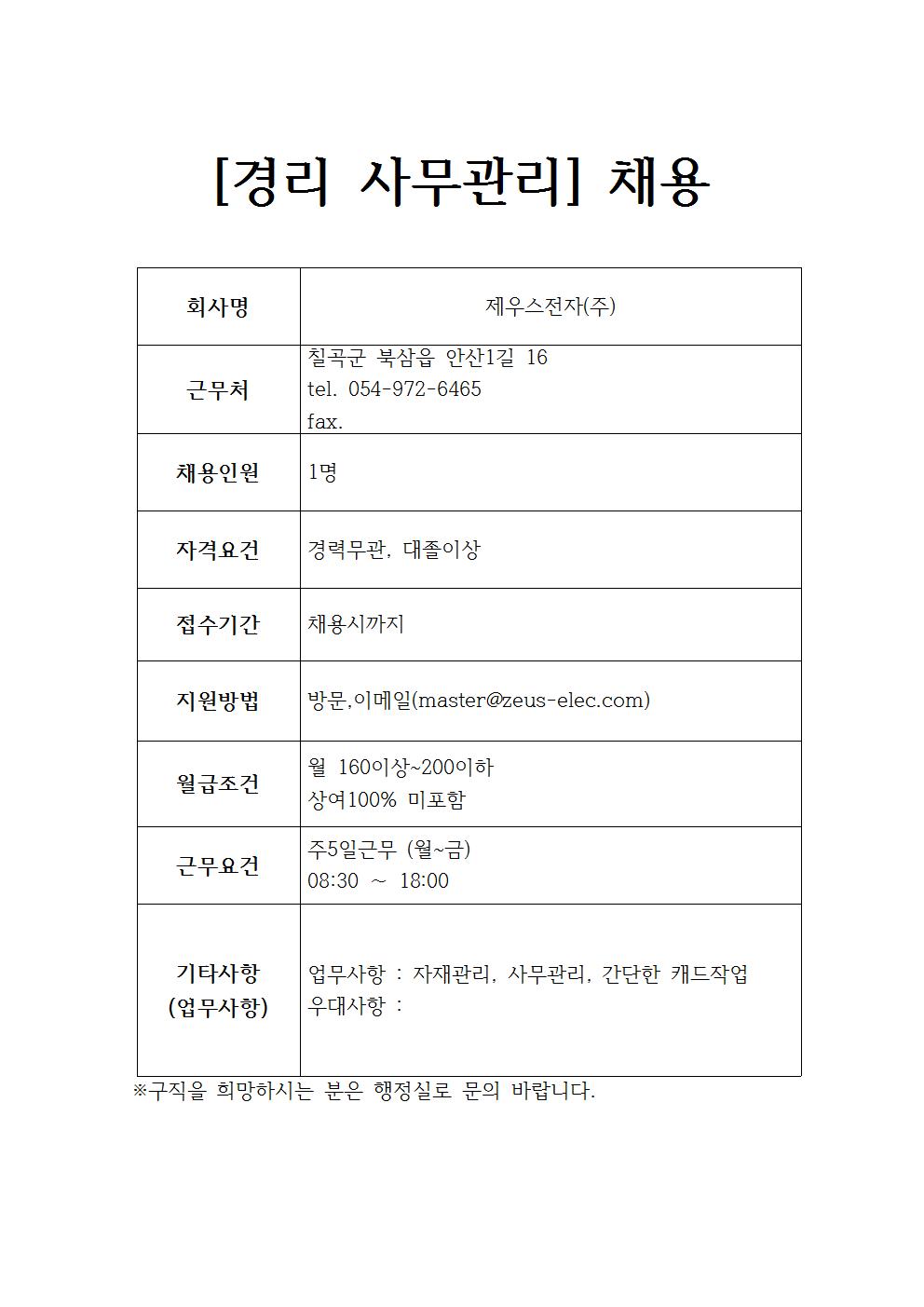 제우스전자(주) 채용정보