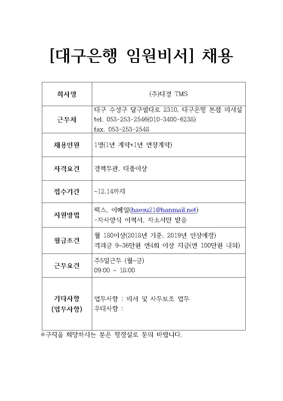 (주)대경TMS 채용정보