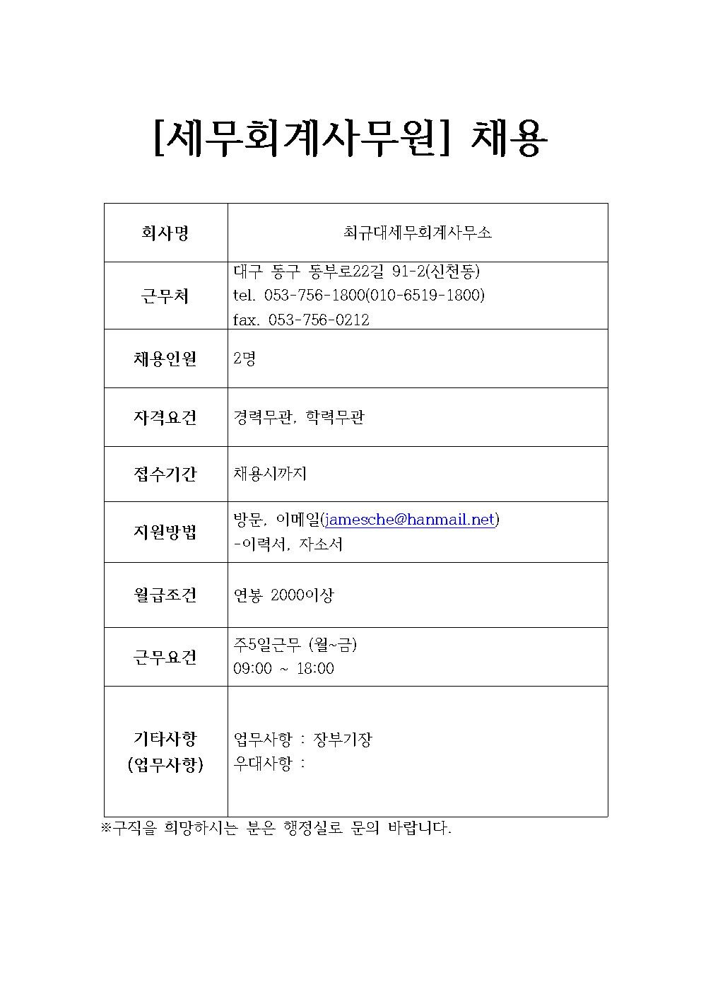 최규대세무회계사무소 채용정보