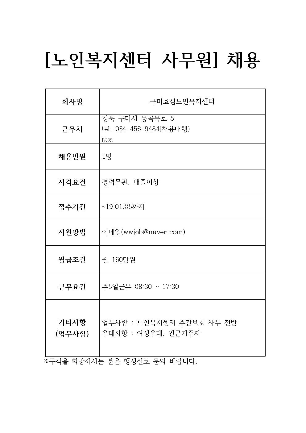 구미효심노인복지센터 채용정보