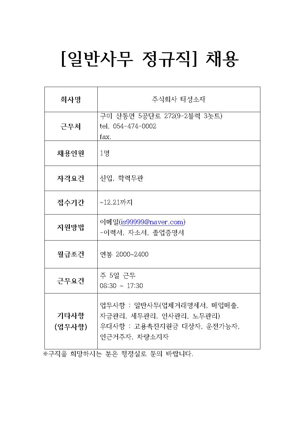 주식회사 태성소재 채용정보