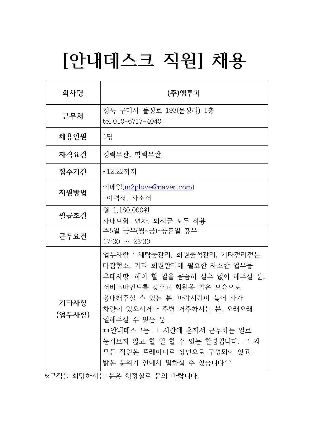 (주)엠투피 채용정보