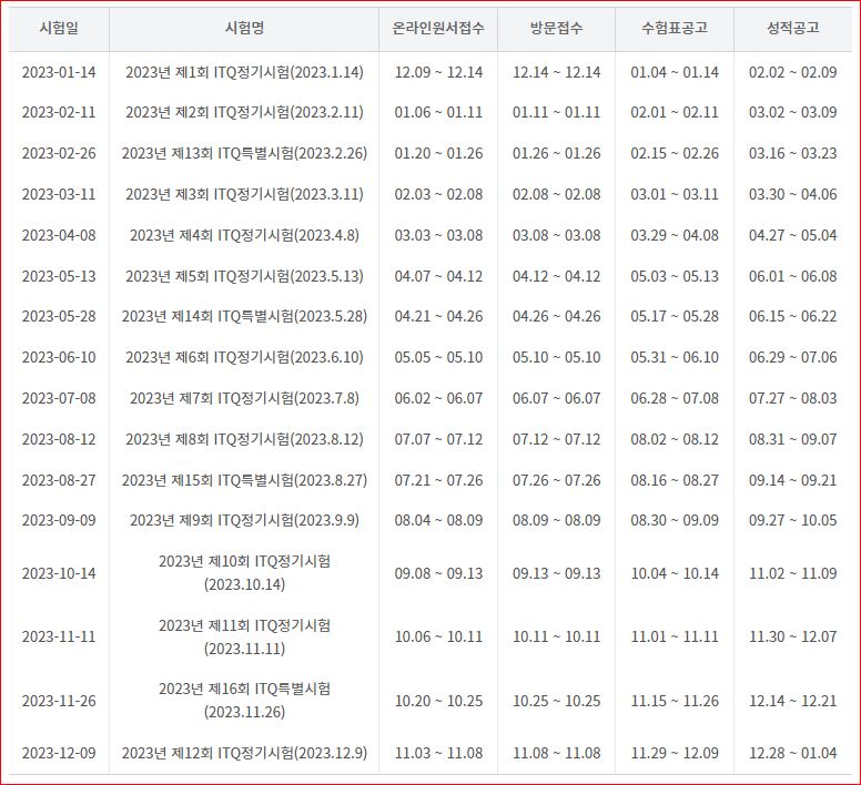 [공지][시험일정] 2023 ITQ 자격시험 일정입니다.
