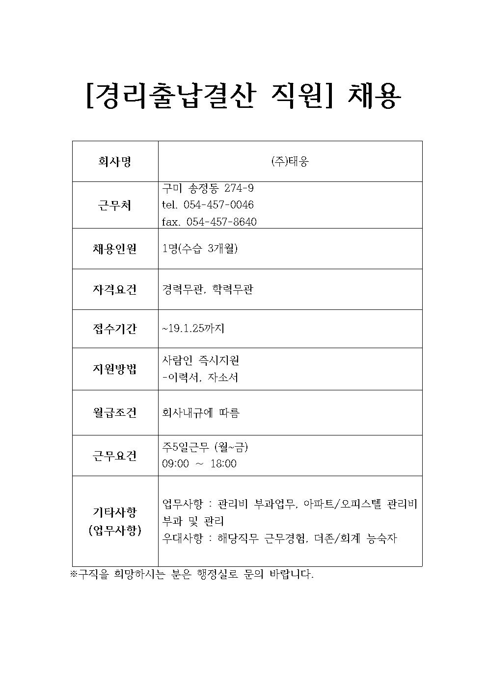 (주)태웅 채용정보