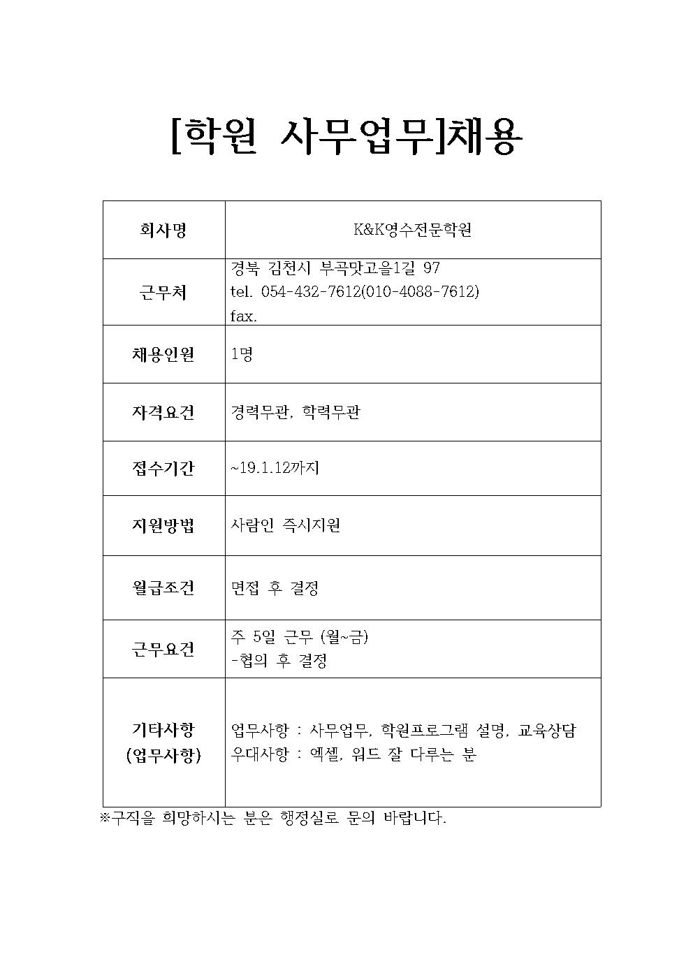 K&K영수전문학원 채용정보