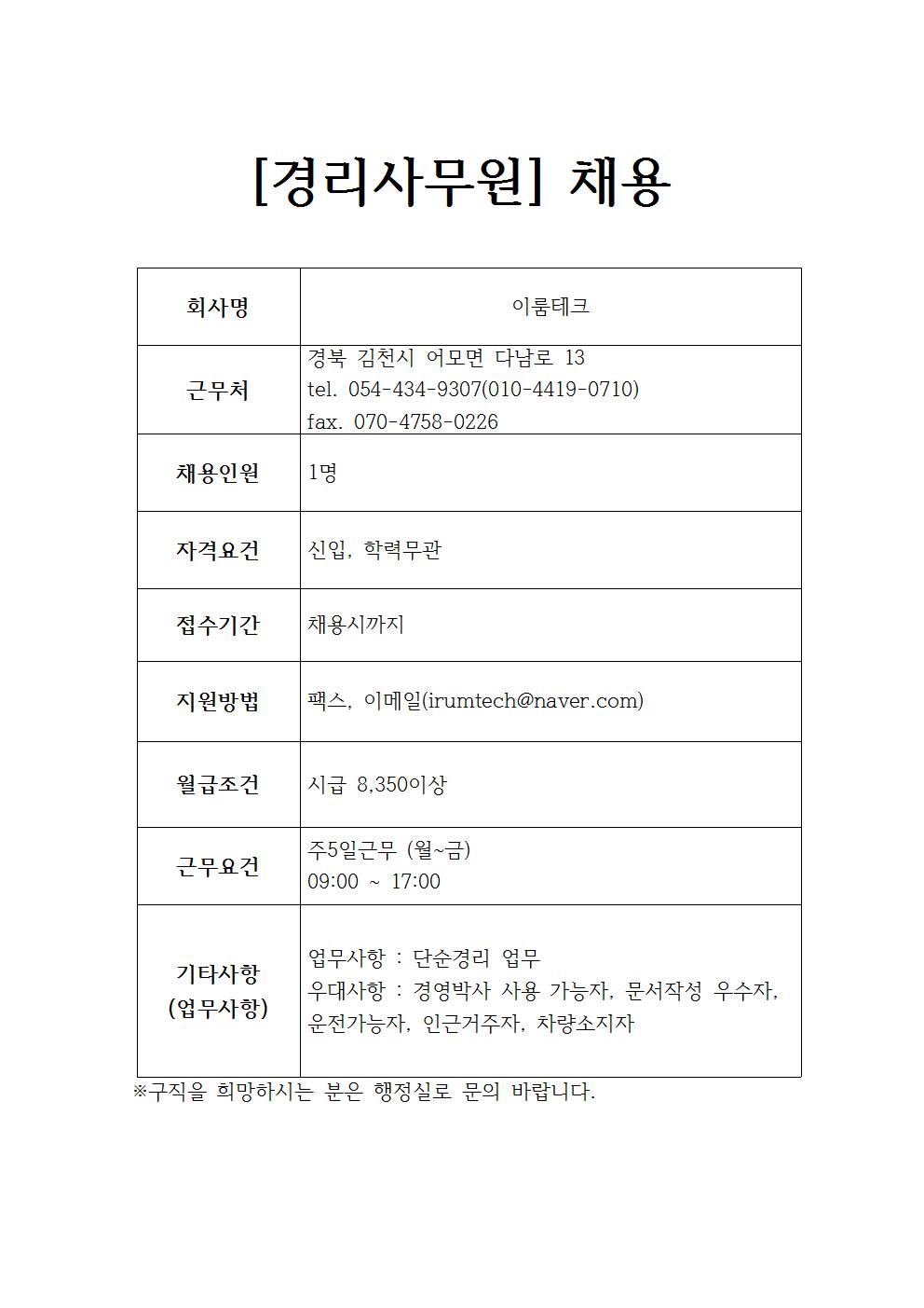 이룸테크 채용정보 - (채용완료)