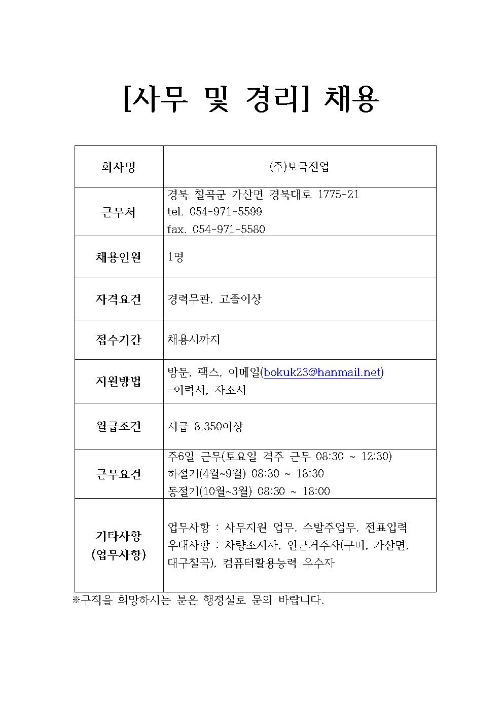 (주)보국전업 채용정보