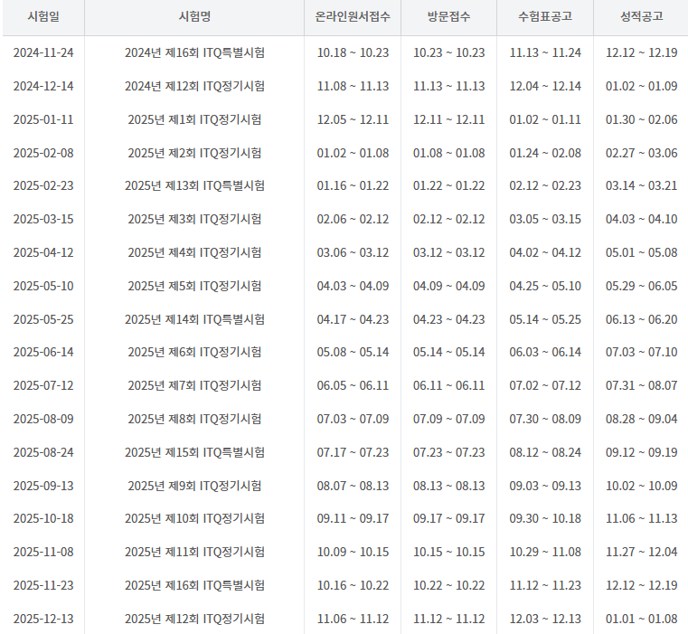 25년 ITQ 시험일정