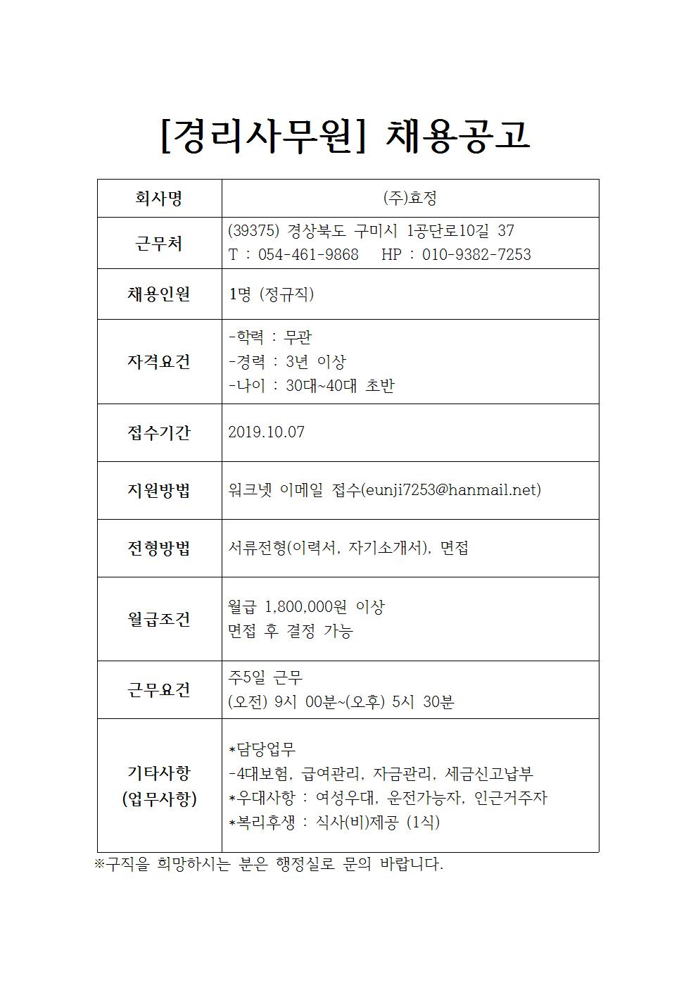 (주)효정 채용공고