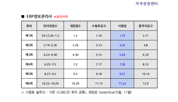 25년 ERP정보관리사 시험일정