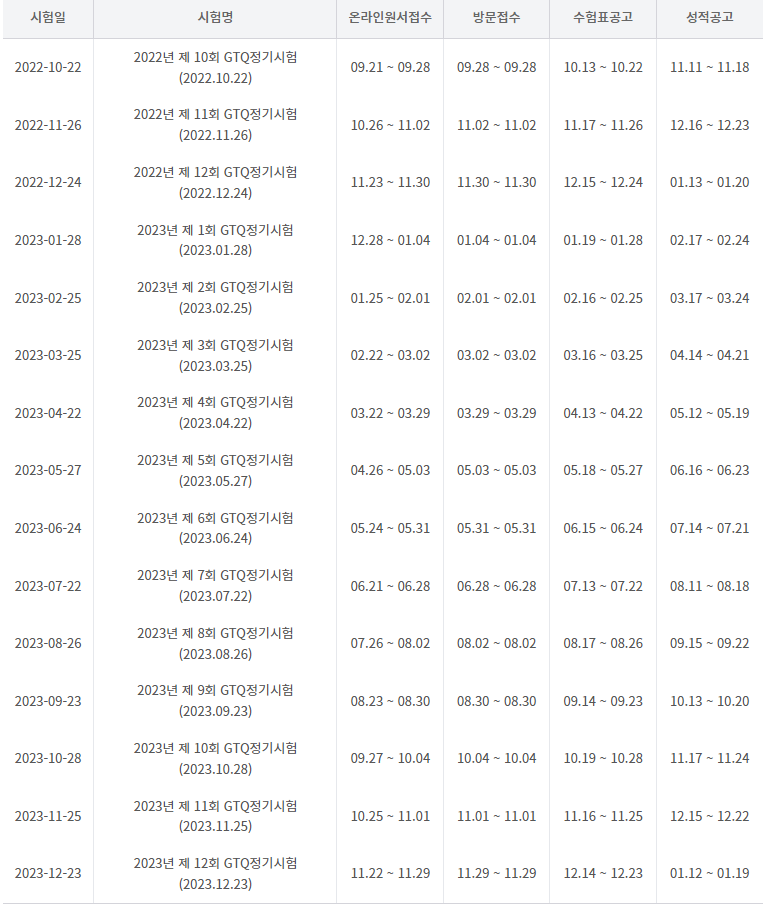[시험일정] 2023 GTQ 자격시험 일정입니다.
